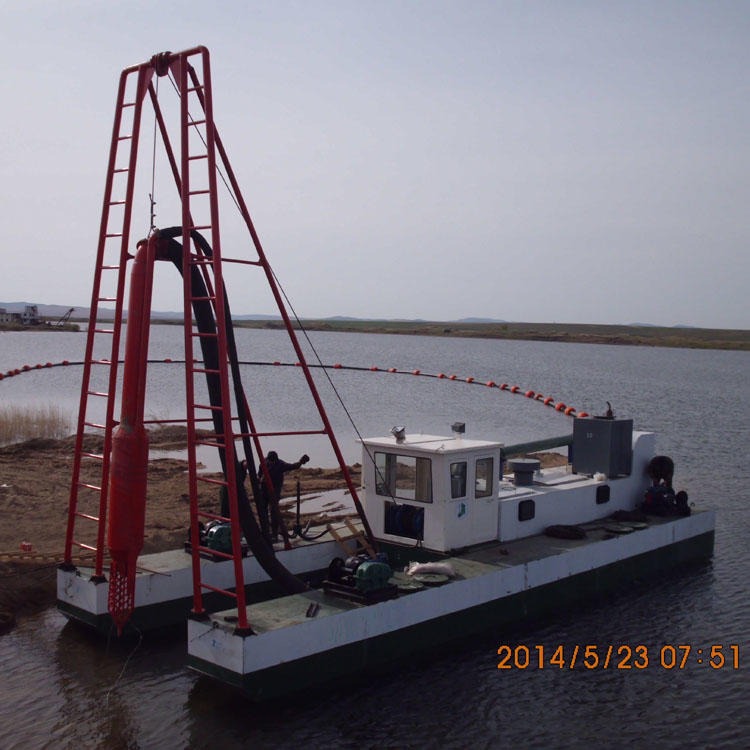 此船廣泛用于和抽沙、水庫,人工湖,河道,港口的清淤和取沙工程。   射吸式抽沙船由高壓水泵和吸沙泵組成,射吸式抽沙船利用船動力帶動水泵,產(chǎn)生高壓水流進入噴水管,高壓水泵把經(jīng)高壓水槍沖擊水底的泥沙層,將沉積河底的淤泥吹攪成渾濁的水狀,泥沙飛濺泛起在吸沙**周圍,經(jīng)吸沙泵吸起由上吸管排到指定位置,這樣一噴一吸完成整個工作過程。
