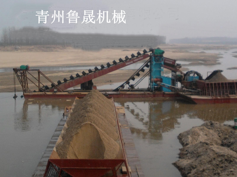 挖沙船又稱挖沙機械,顧名思義即沙石采掘工具,多為流動作業(yè)之用。內(nèi)陸河道挖沙船日采沙能力幾十噸、到幾千噸。船體采用拼裝式箱型結(jié)構(gòu)。配有挖掘裝置、篩選裝置、傳送裝置等。通過電機驅(qū)動挖斗上料,石塊通過篩選傳由輸送帶傳出,沙子由輸送帶傳到地點。