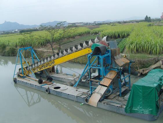 溜槽淘金船是目前使用率比較廣的淘金船,溜槽可以有幾種選擇比如:蠕動溜槽、鼓動溜槽、振動溜槽、循環(huán)溜槽、固定溜槽等。可以根據(jù)黃金形態(tài)進(jìn)行配套。淘金船的產(chǎn)量和回收率可以根據(jù)客戶的要求定制。