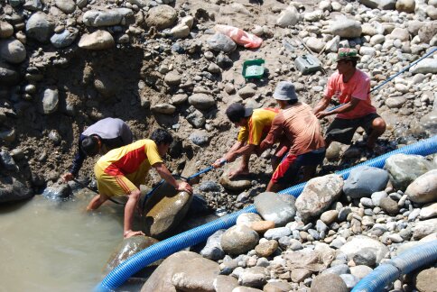 深度超過6米,地下水源豐富,古采邊緣或者附近更容易金富集的地形,價值就大了,我到福建人工地說,他們房子那里古采特別多,下面沒有,我說下面好,房子附近1公里河道沒有什么干的價值就是這個道理,本身房子那里不是金子富集的地段,河谷狹窄,坡度較大,再嚴重點就形成礦脈斷條了,但是古采豐富說明有金,看古采的情況,深度不過3米,砂層很薄,水源方便,開采成本很小。沙金跳汰機