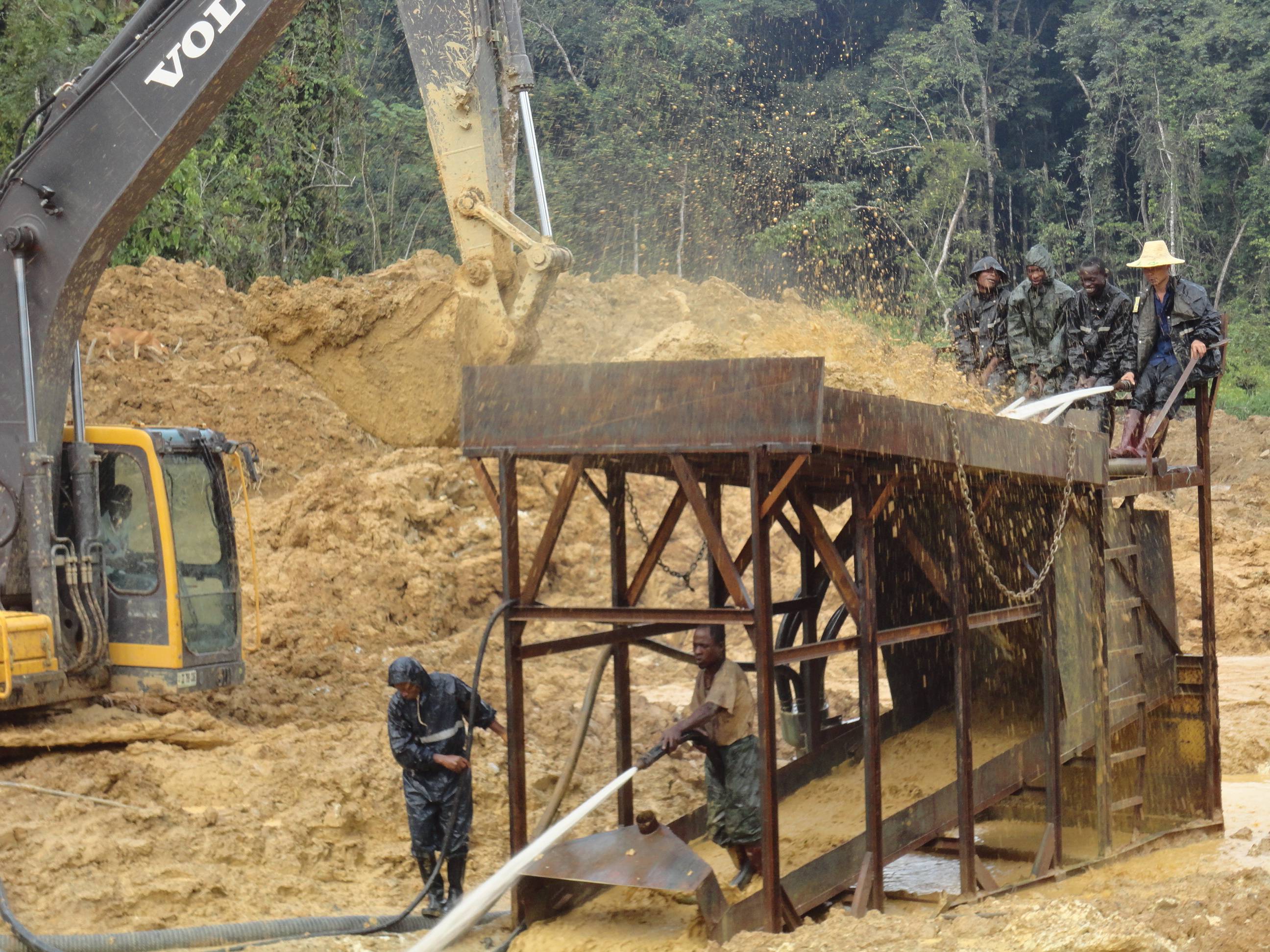 杭州的陳總在幾內(nèi)亞進(jìn)行沙金礦的開(kāi)采,使用的是原始的大溜槽,這種大溜槽產(chǎn)量小,洗礦效果不好,需要人工手持水槍沖洗,沒(méi)有絞泥的效果,另外黃金回收也是固定溜槽,回收率低,尾礦當(dāng)中還有3克含量。所以陳總直接來(lái)到魯晟機(jī)械考察移動(dòng)式新型的旱地沙金設(shè)備。這種新型的是一體式的,移動(dòng)非常方便,配套新型防盜的選金系統(tǒng),回收率高。不光能回收顆粒金,還可以回收毛細(xì)金,片金,等微粒金,目前這款設(shè)備很受客戶的歡迎。