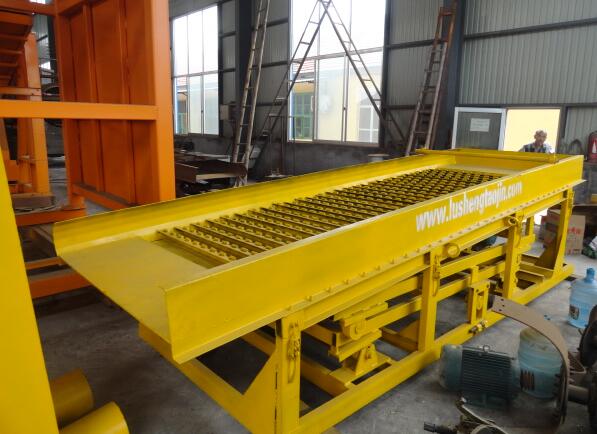 鼓動(dòng)溜槽是在普通固定流槽的基礎(chǔ)上研究出來(lái)的一種新型砂金礦選設(shè)備。它綜合了固定溜槽和跳汰機(jī)的優(yōu)點(diǎn),克服了固定流槽易板結(jié)的缺點(diǎn)和跳汰機(jī)產(chǎn)率大的不足,從而獲得了產(chǎn)率小而不易板結(jié)這一特點(diǎn)。